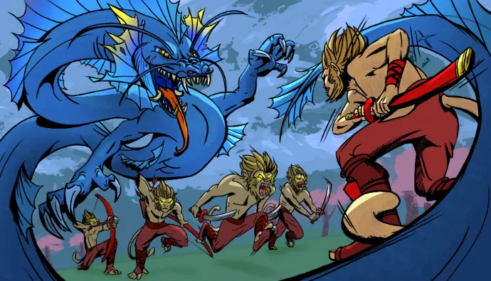 Reinforcing the gameplay goals and anime theme, Son Goku - the Japanese version of the Monkey King - was chosen as the main character. The Monkey King is an ultimate warrior with a vast skillset, giving precedent for the player's supernatural strength.